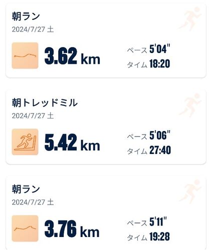 今日は朝ラン。 シューズはジャパンブースト4 新横浜公園までジョグで向かい、今日は回廊へ。 日差しがないだけでだいぶ違う。 940m×6周して帰路に着く。 3日ランオフした割に疲労困憊。ちょっと夏バテ気味かもです。