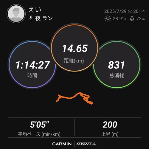 日曜のインターバル走の後、月曜は飲み会につきランオフ。 今日はEペースジョグ。 シューズはPropel v5 日中に比べ気温は下がっているものの湿度は変わらず。汗がすぐに噴き出てくるが、気にせず走り続けて81分で終了。 後半、右足親指の爪下あたりに痛みが…