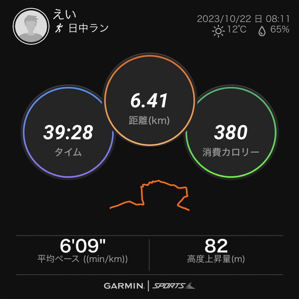 2023-10-22 リハビリ完了【2023/10/22午前ラン】 坂トレ 足腰のリハビリは完了したので、今日は心肺のリハビリ。 ヒルトレーニングです。 シューズは錬ブースト3 起伏コースまではゆるジョグ。 トレーニングスタート。 45秒疾走、80秒でスタートまでジョグで戻る(省略)の繰り返し。 疾走といいつつ出し切るペースではなく、12本走り切ることを目的としたペース。 1本あたり170mから180mくらいでした。 帰りものんびりジョグ。 トータル20km。 これでリハビリは終了。 明日からの平日もしっかり走っていきます。 にほんブログ村