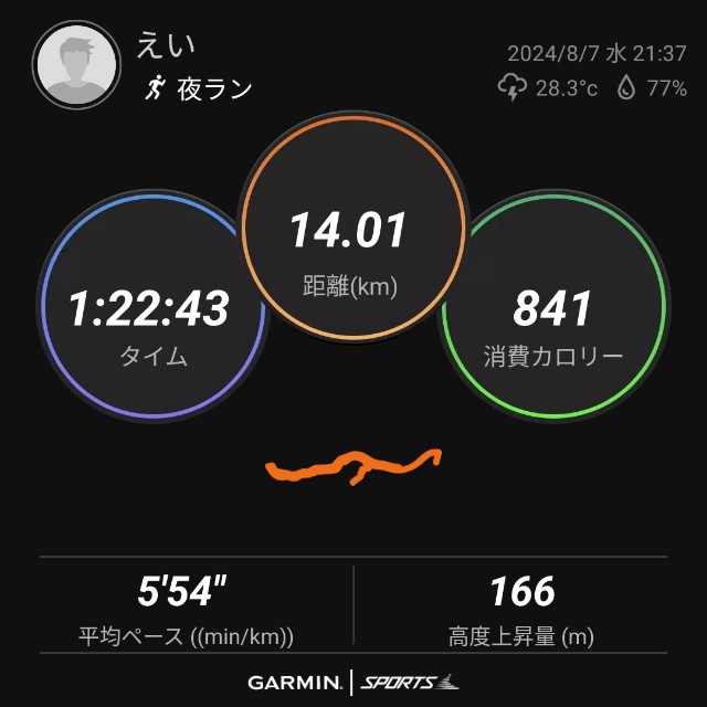 2024-08-07 ジョグ【2024/08/07夜ラン】 ジョグ 夕食後に出走。 シューズはフリーラン スロージョグからはじめ、ラスト3kmだけEペースまで上げて終了。 走れていないものの、動きは悪くない。 走れる時に走るだけでいい。